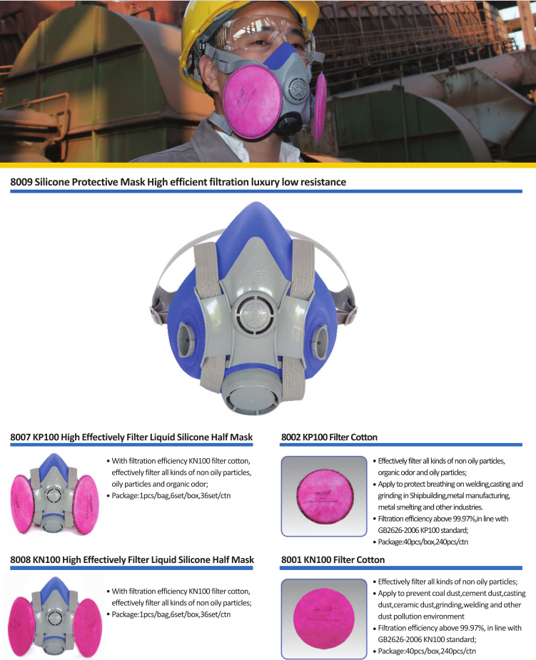 8009 Silicone Protective Mask,High efficient filtration,Luxury,Low resistance